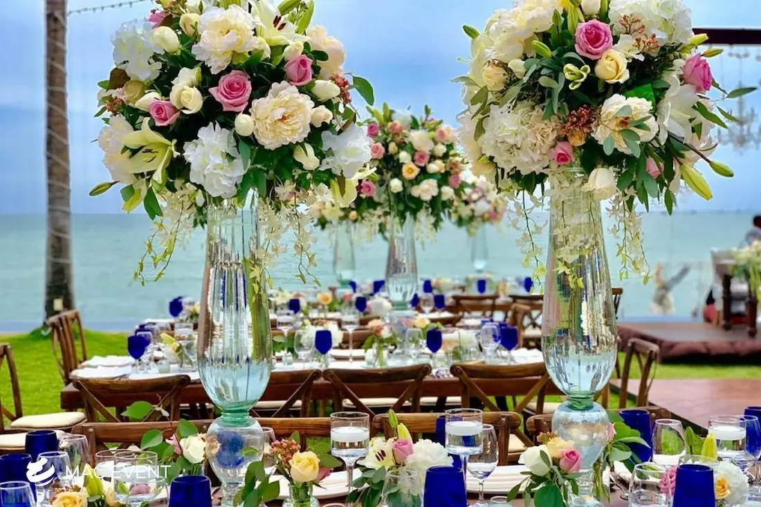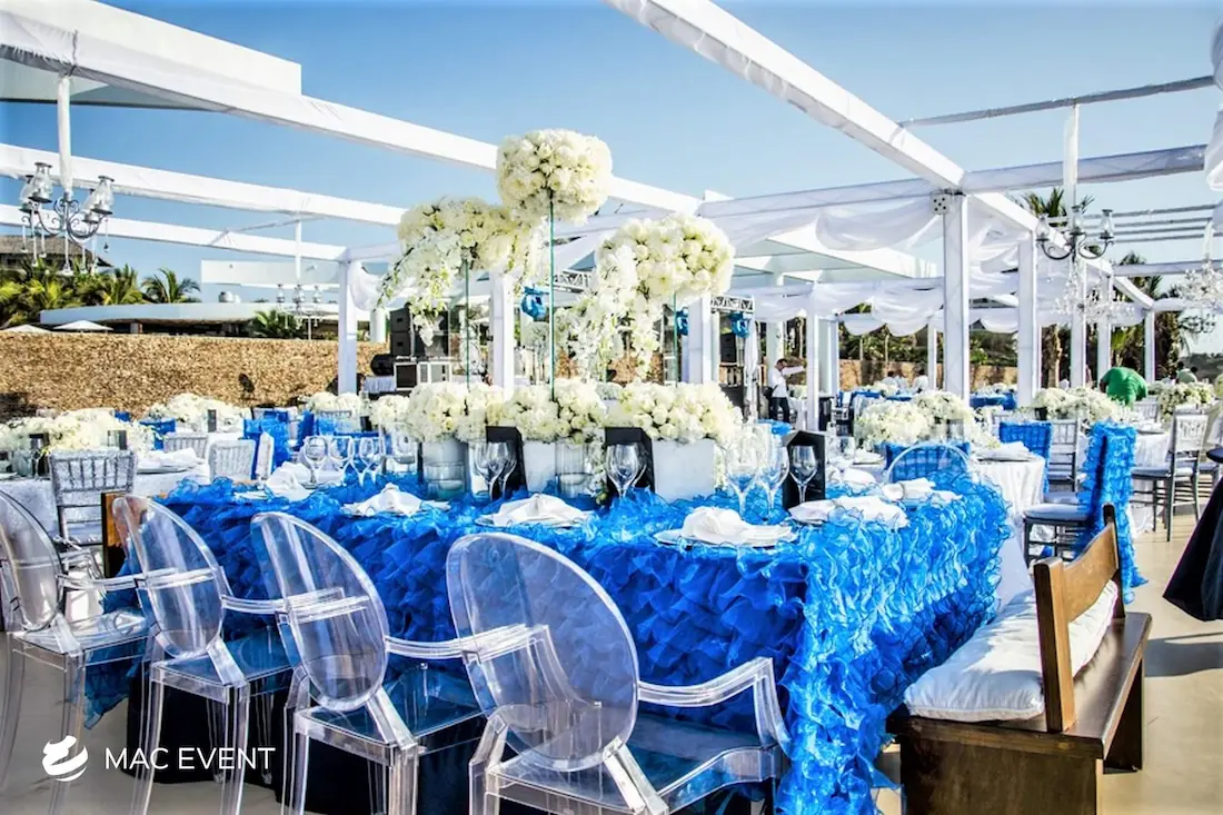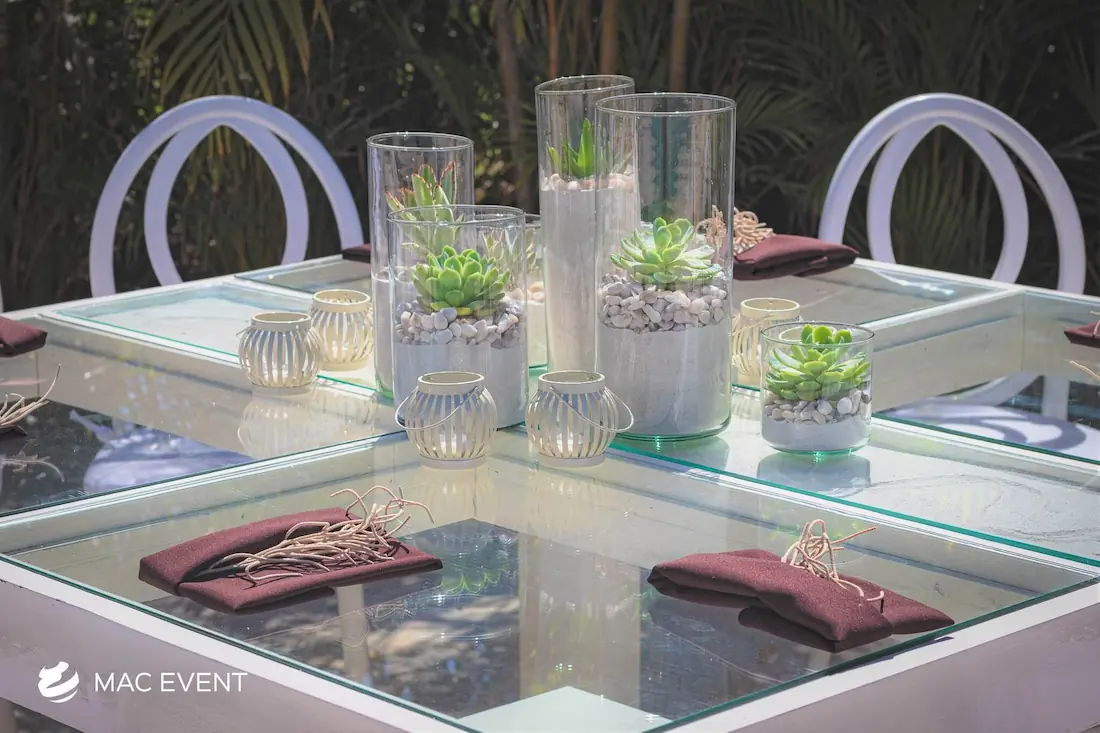 The banquet table centerpiece adds elegance and harmony to long table setups at weddings, parties, and corporate events in Destiladeras. Designed to complement extended dining arrangements, this event décor rental enhances the flow and visual balance of your space. Whether styled with lush greenery, candles, or floral arrangements, the banquet table centerpiece creates a warm and sophisticated atmosphere that encourages conversation and connection. Renting banquet table centerpieces in Destiladeras ensures a coordinated and polished presentation that perfectly matches your event theme. For a refined and inviting dining experience, this centerpiece is an ideal finishing touch.