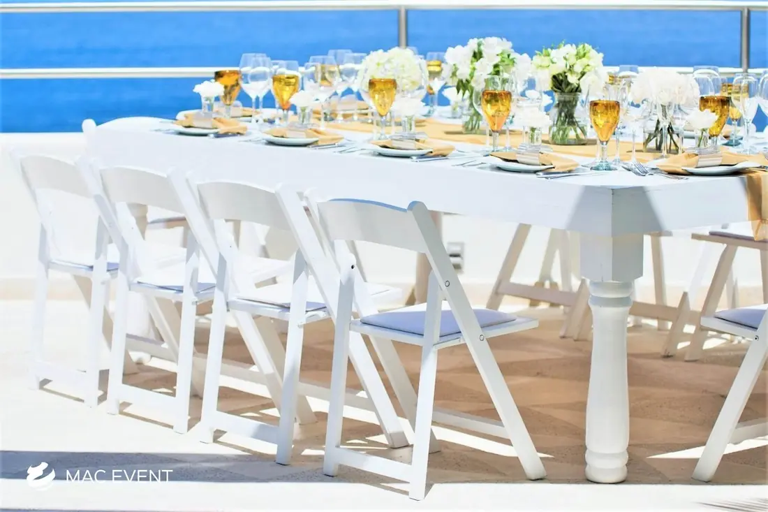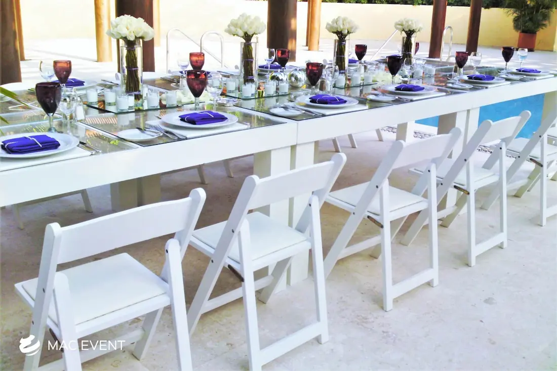 The avant garde chair and wooden padded folding chair are excellent options for creating stylish and comfortable event seating in Destiladeras. The avant garde chair offers a sleek, modern look that fits perfectly in contemporary weddings, corporate events, and upscale parties. In contrast, the wooden padded folding chair provides a classic and warm appearance with the added benefit of comfort and easy setup. Renting these event chairs allows you to match your theme, elevate your décor, and ensure your guests enjoy every moment. Whether you prefer modern sophistication or rustic charm, chair rentals in Destiladeras help you design a polished and inviting atmosphere for any occasion.