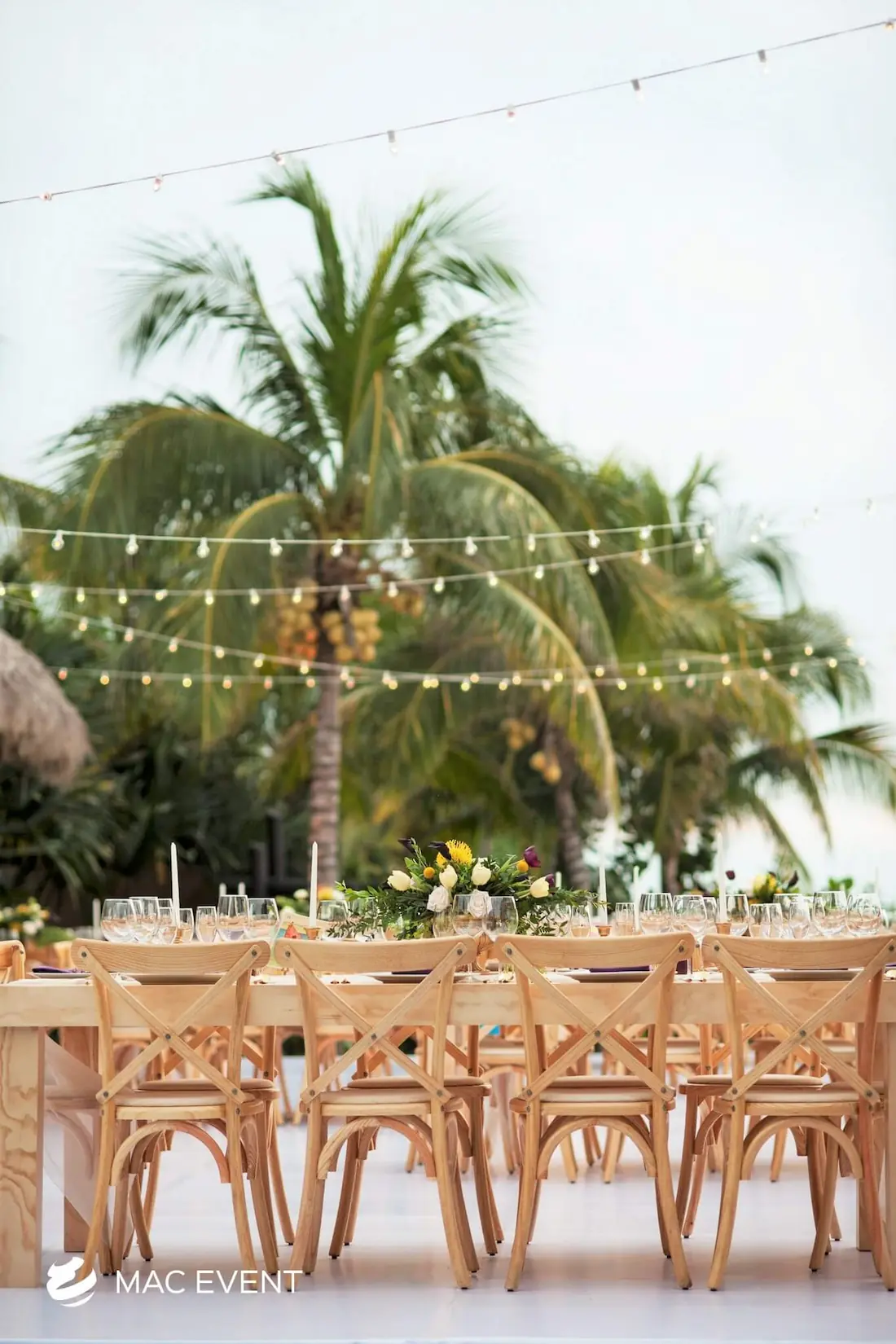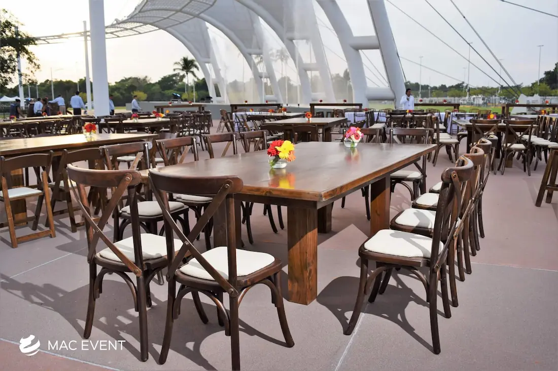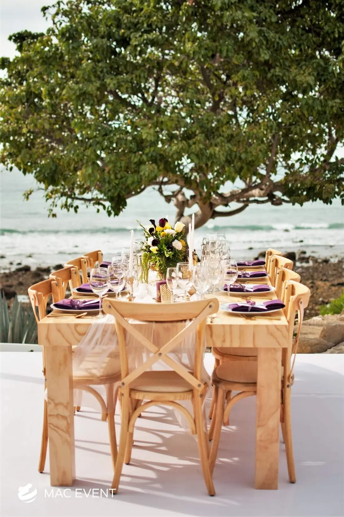 The cross back chair, also known as a x-back chair or farmhouse chair, is a timeless favorite for weddings, private parties, and elegant events in Destiladeras. Its rustic yet refined design blends perfectly with beach, garden, or boho-inspired settings, adding charm and character to any venue. Crafted from sturdy wood with a curved back for comfort, this cross back chair rental offers both beauty and practicality. Renting x-back chairs ensures a coordinated look that enhances your décor while keeping guests comfortable throughout the celebration. For a natural and sophisticated atmosphere, cross back chairs are the perfect choice for any event in Destiladeras.