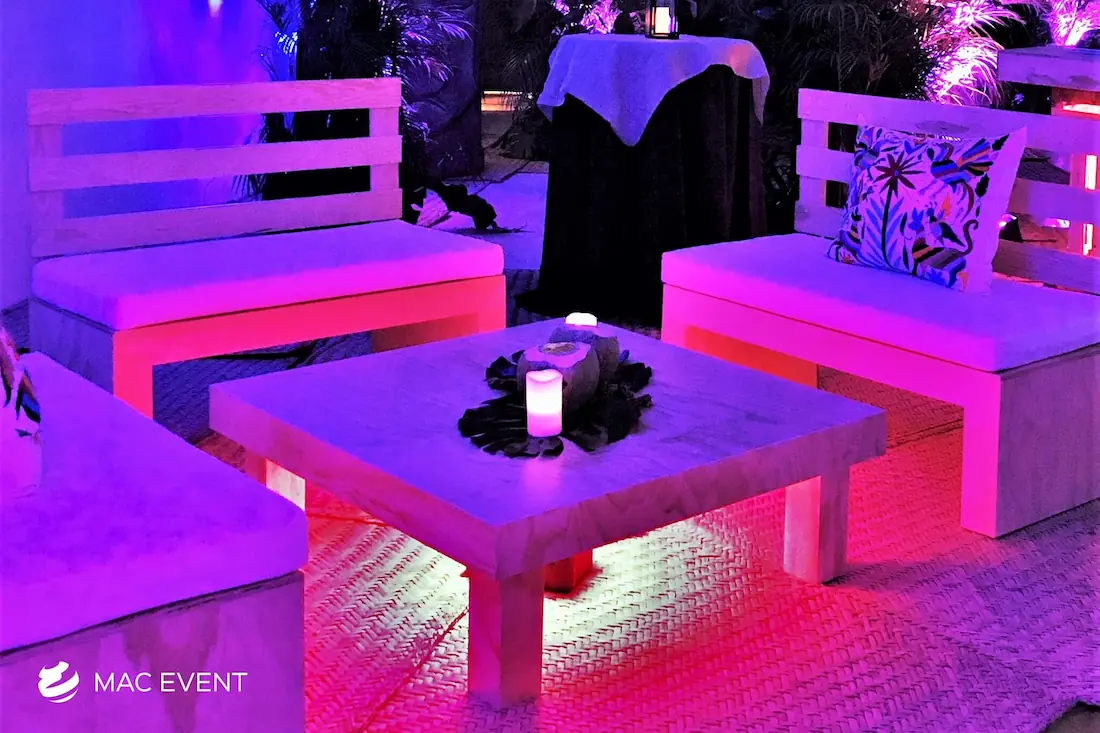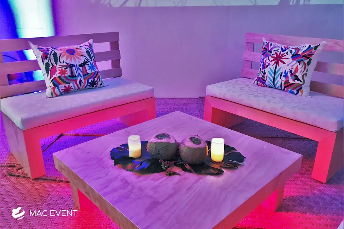 The natural lounge is perfect for creating a relaxed and elegant atmosphere at weddings, parties, and corporate events in Destiladeras. With its organic materials, soft tones, and simple design, this event lounge rental blends beautifully with tropical, beach, or garden settings. Ideal for outdoor receptions or boho-inspired gatherings, the natural lounge offers comfort and style while highlighting the beauty of the surroundings. Renting natural lounges in Destiladeras allows you to design warm, inviting spaces where guests can unwind and connect. For effortless elegance inspired by nature, the natural lounge is a perfect choice for any celebration.