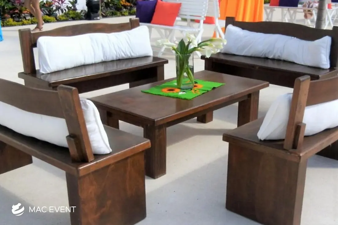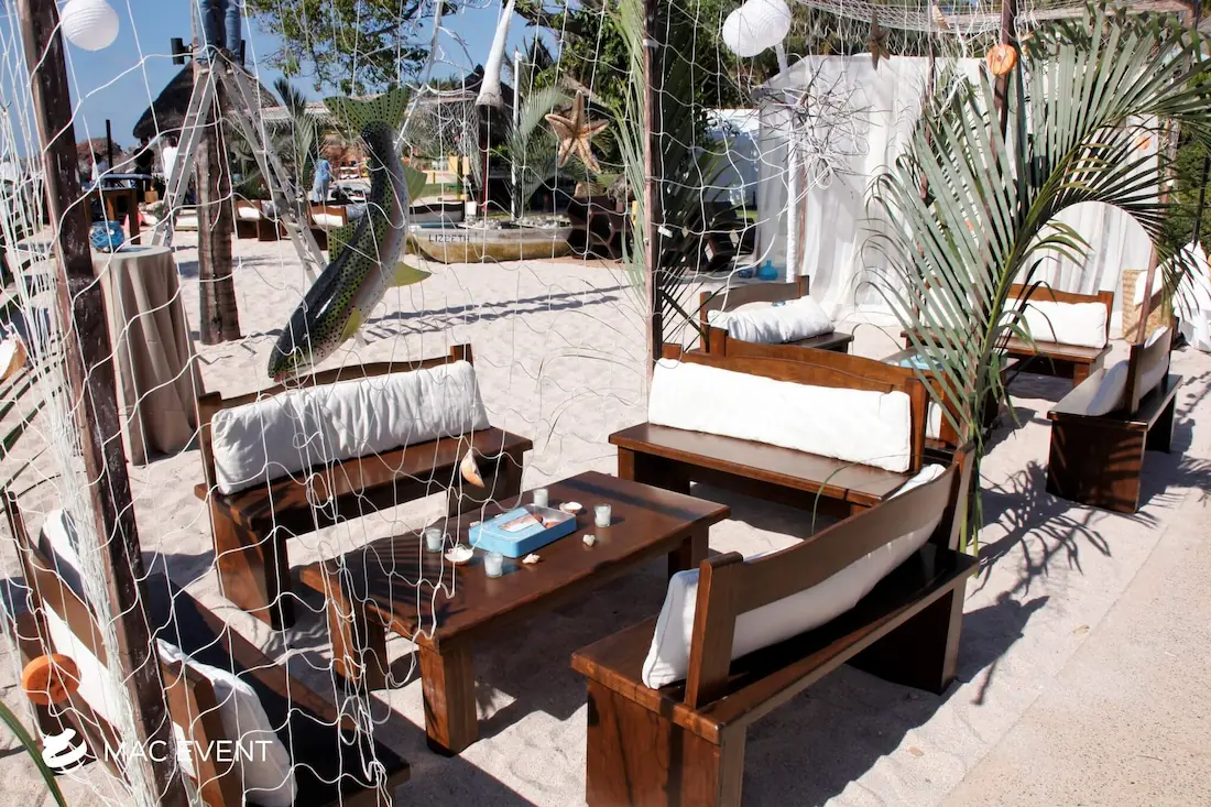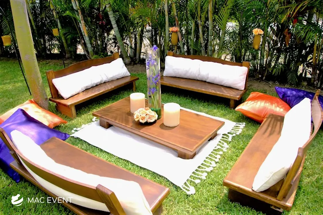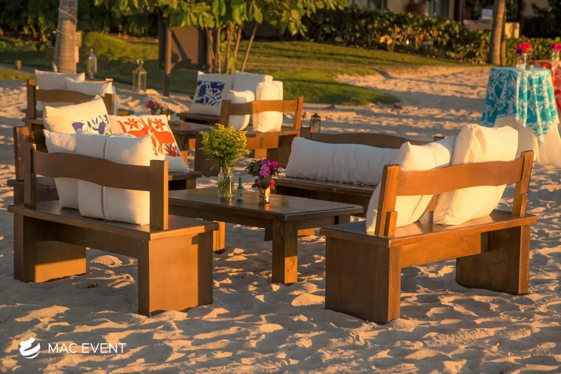 The rustic lounge adds warmth and natural beauty to weddings, beach parties, and corporate events in Destiladeras. With its wooden textures, earthy tones, and cozy design, this event lounge rental creates a relaxed yet elegant atmosphere that complements tropical, boho, or countryside themes. Ideal for outdoor receptions and social areas, the rustic lounge invites guests to unwind and connect in comfort. Renting rustic lounges in Destiladeras allows you to design charming and cohesive spaces that feel authentic and stylish. For a welcoming setup that blends nature and sophistication, the rustic lounge is an excellent choice.