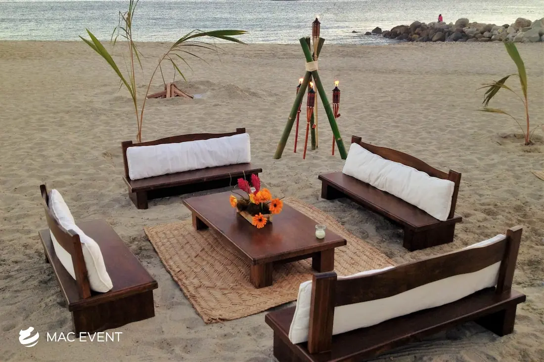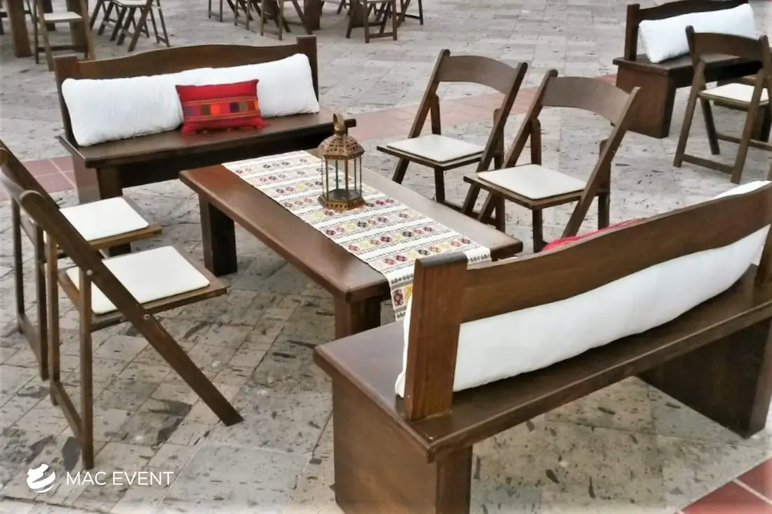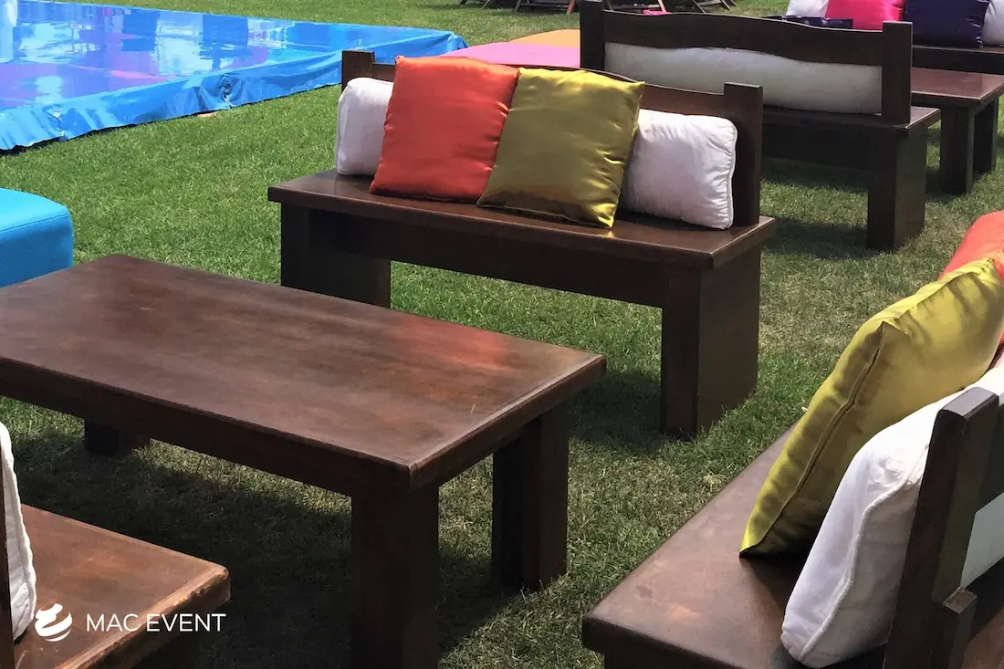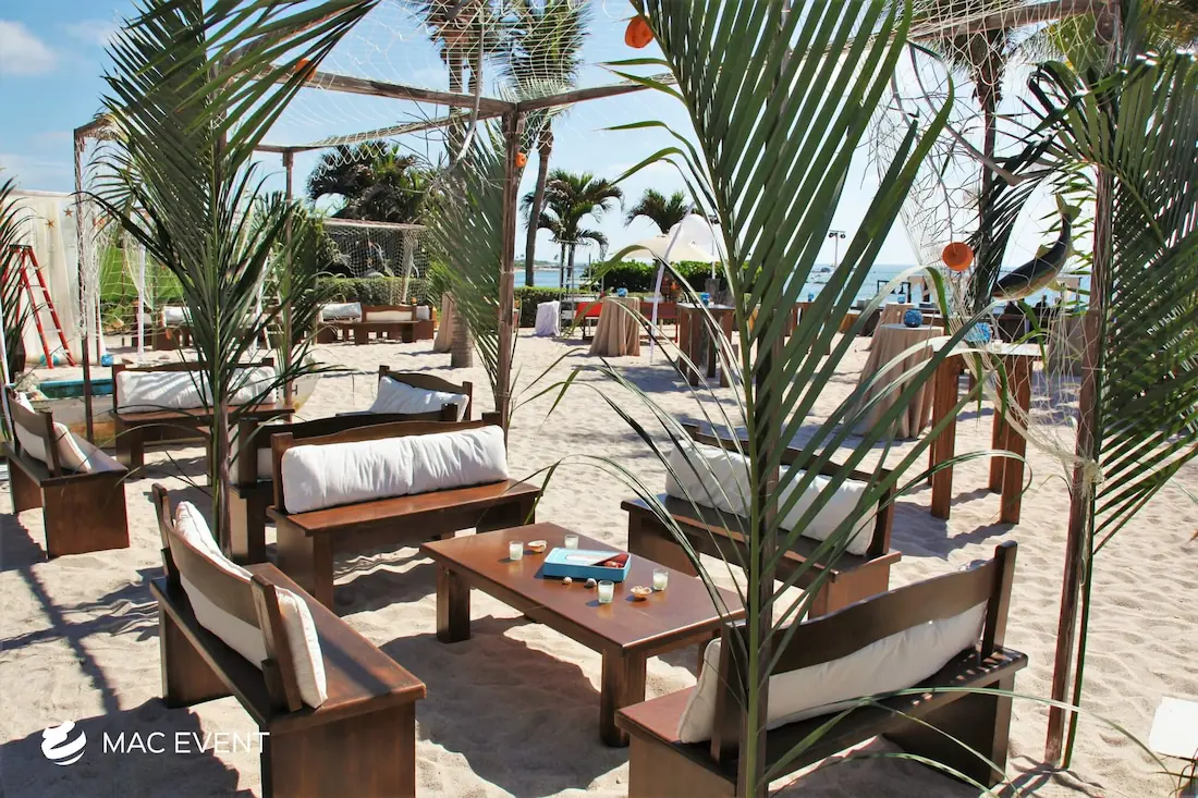 The rustic lounge adds warmth and natural beauty to weddings, beach parties, and corporate events in Destiladeras. With its wooden textures, earthy tones, and cozy design, this event lounge rental creates a relaxed yet elegant atmosphere that complements tropical, boho, or countryside themes. Ideal for outdoor receptions and social areas, the rustic lounge invites guests to unwind and connect in comfort. Renting rustic lounges in Destiladeras allows you to design charming and cohesive spaces that feel authentic and stylish. For a welcoming setup that blends nature and sophistication, the rustic lounge is an excellent choice.