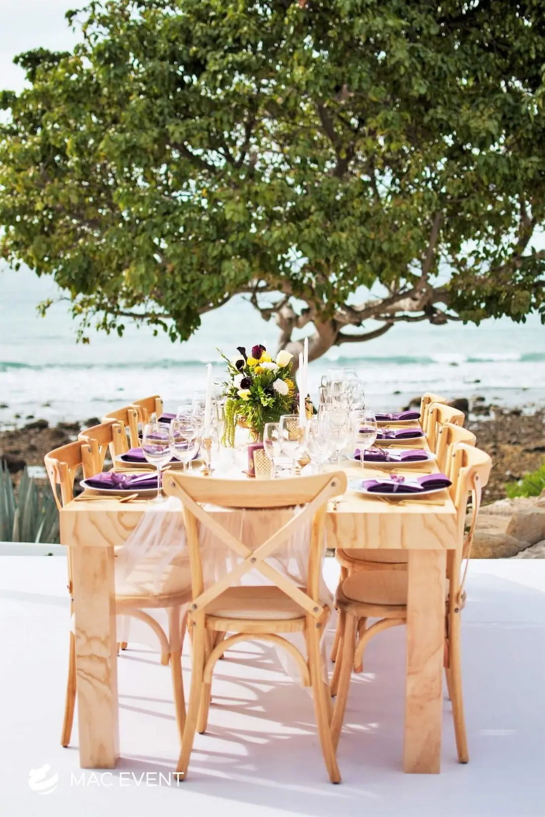 The natural table is an elegant and versatile choice for weddings, private parties, and corporate events in Destiladeras. With its organic wood finish and minimalist design, this event table rental creates a warm and inviting atmosphere that pairs perfectly with tropical, rustic, or boho décor. Ideal for dining setups, lounge areas, or outdoor receptions, the natural table offers both style and durability. Renting natural tables in Destiladeras allows you to achieve a cohesive, authentic look that enhances your event’s overall aesthetic. For effortless elegance and a connection to nature, this table is the perfect addition to any celebration.