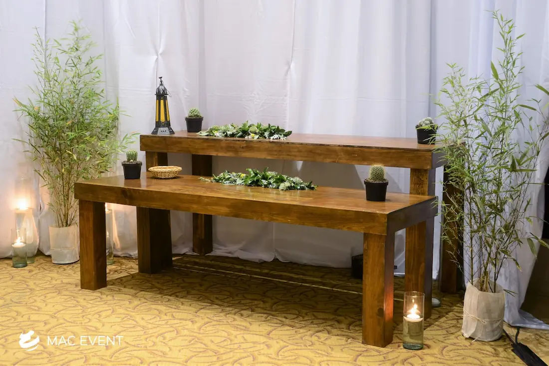The rustic long table adds warmth and natural charm to weddings, parties, and corporate events in Destiladeras. Crafted from solid wood with a handcrafted finish, this event table rental creates an inviting atmosphere that fits perfectly with boho, tropical, or countryside themes. Ideal for family-style dining, outdoor receptions, or elegant beach setups, the rustic long table combines durability with timeless beauty. Renting rustic long tables in Destiladeras allows you to design cohesive, welcoming spaces that encourage connection and conversation. For a naturally elegant and authentic setting, this table is a perfect choice for any event.